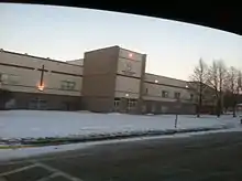 Western's first location was in a three-story house on Hull's Main Street, known as "The Mansion."[6][7] The school building was built in 1924 for $64,000.[6][29] The first expansion of the 1924 building was completed in 1948, and included a library and science laboratories. In 1957, a gymnasium, locker rooms, a stage, and two classrooms were added for $125,000.[6] In 1964, a space for music was built for $75,000.[6] By 1968, an addition to the science wing was finished for $175,000.[6] A new gymnasium was constructed in 1980 for $900,000.[6] Renovations to the whole building took place from May 1994 to September 1995 for $2 million.[6] A maintenance project in 2006 added a strength and conditioning room, as well as a bus barn to the school, for $1 million.[6] In June 2014, Western Christian received grants from the Minnesota Twins Major League Baseball team and the Modern Woodmen of America for renovations to their baseball and softball fields.[30] New classrooms were added to the building in 2015.[31] The next year, air conditioning was installed and the student commons remolded.[32]