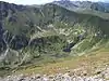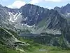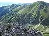 The Western Tatras (Slovak: Západné Tatry; Polish: Tatry Zachodnie) are mountains in the Tatras, part of the Carpathian Mountains, located on the Polish-Slovak borders. The mountains border the High Tatras in the east, Podtatranská kotlina in the south, Choč Mountains in the west and Rów Podtatrzański (Slovak: Podtatranská brázda) in the north. The main ridge is 37 kilometers long and the mountain range contains 31 two-thousanders.