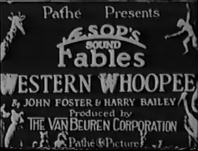 Western Whoopee is a 1930 animated short film directed by John Foster and Harry Bailey.[1][2] It is part of the early cartoon series Aesop's Sound Fables.[2] It was produced by The Van Beuren Corporation and released by the film company Pathé.[2] It, like other Sound Fables at that time, features Milton and Rita, who resembles Mickey and Minnie Mouse greatly, so much so, Disney sued Van Beuren for the resemblance.[3]