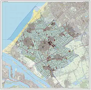Westland was created on 1 January 2004 by a merger of the municipalities De Lier, 's-Gravenzande, Monster, Naaldwijk and Wateringen.[5] These are also the names of five of the settlements. The others are Heenweg, Honselersdijk, Kwintsheul, Maasdijk, Poeldijk, and Ter Heijde. Westland itself is not the name of a settlement or town, but rather of the region. The City hall is located in the middle of Westland, in Naaldwijk, the second largest settlement in Westland.[6]