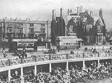 There were three abortive schemes to open tramways in Weston-super-Mare during the last two decades of the nineteenth century. A scheme was promoted in 1882 for a 3 ft 6 in (1,067 mm) steam tram network to serve the railway station, the town centre and Birnbeck Pier.[1] In 1885 the Weston, Clevedon and Portishead Tramway gained an Act of Parliament that allowed it to construct a tramway along The Boulevard, Gerrard Road and Milton Road to Ashcombe Road, from where it would continue across fields towards Portishead. Although rails were laid in 1894 they were taken up again three years later, and Ashcombe Road became the tramway's terminus when it finally opened to Clevedon later that year. Motive power had been authorised as either horse or steam power.[2] Another Act was passed in 1897 for a company named Drake and Gorham to build an electric tramway in the town, but the powers lapsed in 1899.[1]
