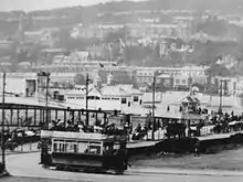 Two separate services were generally operated, the busiest one being between the Old Pier and Sanatorium via the Grand Pier. The other route saw services from the Old Pier to Locking Road, although in summer they often ran only between Oxford Street and Locking Road to leave the sea front clear for Old Pier services.[9] The third side of the triangle at the Grand Pier Junction was never used for services, and any movements from the depot towards the Sanatorium usually ran towards the pier then reversed as the arrangement of overhead wires made this easier for the crews.[10] Short services were sometimes operated between the Old Pier and Grand Pier, or between the railway excursion station and the Grand Pier to cope with large crowds of visitors arriving by boat or train respectively. Extra services also operated from Knightstone to the town centre after theatre performances in the pavilion.[9]