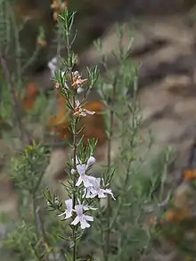 Westringia eremicola, commonly known as slender westringia or slender western rosemary,[2] is a flowering plant in the family Lamiaceae and is endemic to eastern Australia. It is a small shrub, with narrow leaves and pink, mauve to white flowers.