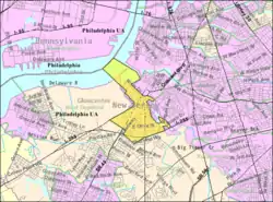 The borough borders the municipalities of Deptford Township and West Deptford Township in Gloucester County; Bellmawr, Brooklawn and Gloucester City in Camden County; and Philadelphia, across the Delaware River in Pennsylvania.[29][30]