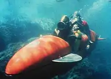Usually, scuba divers ride outside the device as one would ride a motorcycle or in a semi-enclosed opening like a kayak or bobsled, although it can be designed to fully enclose its occupant(s) to reduce drag. An enclosed vehicle may also provide a dry viewing chamber for the occupant(s). The sub is generally propelled by an electric motor and is battery powered. The depth and endurance is typically limited by the requirements of the divers, particularly water temperature and breathable air.[3]