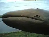 Whale is a 9-foot (2.7 m) sculpture installed at,[1] and the namesake of, Whale Park (or Hemlock Street Park),[2][3] located at the north end of downtown Cannon Beach. The sculpture commemorates the visit by members of the Lewis and Clark Expedition's Corps of Discovery in January 1806, including William Clark and Sacagawea, who explored the area to investigate reports of a beached whale.[4][5] It measures 4 feet (1.2 m) x 3.5 feet (1.1 m) x 10 feet (3.0 m) and is positioned horizontally on top of two metal posts anchored in a concrete base which is 2 feet (0.61 m) tall. The whale's head and tail are elevated. The underside of its proper right flipper contains an unintelligible signature by the artist which may read "Hartwick".[2] The original artist that carved the wood sculpture was Gregory Alan Hartwick.