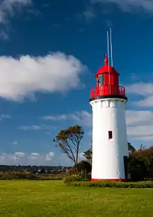 Whalers Bluff Lighthouse is a lighthouse on Whalers Bluff, also known as Whalers Point, in the regional city of Portland in the Western District of the state of Victoria in Australia. It stands about 1.5 km north of the city centre and overlooks Portland's harbour. It is operated by the Victorian Channels Authority, part of the Port of Melbourne Corporation.[1][2]