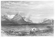 Whales played a part in the lives of coastal Aboriginals in pre-colonial Australia. They were a totem animal for some clans in Western Australia.[5] Their depiction in rock art in New South Wales indicates whales also had significance in eastern Australia.[6] Four or five Aboriginal rock engravings near Sydney have been identified as depicting whale feasts.[7] Beached whales, or those that died at sea and washed ashore, were an occasional food source for coastal Aboriginals. The smell of the decomposing whale would attract the first arrivals and messages would be sent to neighbouring groups to come and attend the banquet.[8]