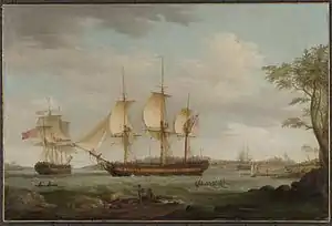 Hunting the sperm whale could be a lucrative activity. Britannia returned to Britain in 1793 with 118 tuns of sperm whale oil and 1,900 sealskins.[15] The other Third Fleet whalers which returned to Britain in 1793 were William and Ann (Captain Eber Bunker) with 68 tuns of sperm whale oil and 8,468 seal skins, Mary Ann (Mark Munro) with 25 tuns of oil and 1,900 seal skins and Scamander (John Nichol) with 117 tuns of oil and 6,100 seal skins.[16] Britannia had been at Dusky Sound on the South Island of New Zealand where some or all of the seal skins may have taken.[17] Another Third Fleet whaler, Matilda (Matthew Weatherhead), was lost at sea.[16] One other British whaler was reported off New Holland (Australia) between 1791 and 1793. This was Canada (Captain Alexander Muirhead) which returned to Britain in 1793 with 15 tuns of sperm whale oil, 6 tuns of right whale oil and 7,000 seal skins.[18]
