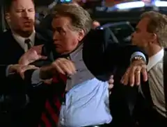![]() President Bartlett is rushed into his limo by Secret Service agents after shots ring out. | |