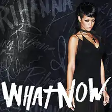 "What Now" is a song recorded by Barbadian singer Rihanna for her seventh studio album, Unapologetic (2012). It was written by Olivia Waithe, Parker Ighile, Maestro The Baker and Nathan Cassells alongside Rihanna, with production handled by Ighile and Cassells. A remix collection was released exclusively to Beatport on August 29, 2013[1] and later via iTunes, Amazon, and Google Play on September 17, 2013.[2][3][4] The single was serviced to US rhythmic radio on September 24, 2013, before impacting mainstream radio on October 1, 2013 as the fifth international single and sixth overall from Unapologetic. Another remix collection was released to Beatport on October 29, 2013.[5] The song is a mid-tempo piano ballad which incorporates sounds which resemble "sonic bombs" during the chorus and "crashing" drums.
