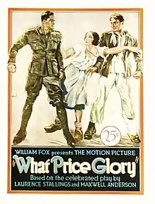 What Price Glory? is a 1926 American silent comedy-drama war film produced and distributed by Fox Film Corporation and directed by Raoul Walsh. The film is based on the 1924 play What Price Glory by Maxwell Anderson and Laurence Stallings and was remade in 1952 as What Price Glory starring James Cagney.[2][3] Malcolm Stuart Boylan, founder of the U.S. Coast Guard Auxiliary, was title writer on the silent Fox attraction.[4]
