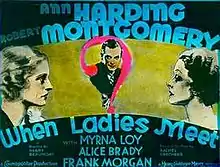 When Ladies Meet is a 1933 pre-Code film directed by Harry Beaumont and starring Ann Harding, Myrna Loy, Robert Montgomery, Alice Brady, and Frank Morgan. The film is the first adaptation of the 1932 Rachel Crothers play of the same name. It was nominated for an Academy Award for Best Art Direction by Cedric Gibbons.[1]