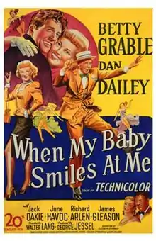 When My Baby Smiles at Me is a 1948 musical film directed by Walter Lang and starring Betty Grable and Dan Dailey. Released by 20th Century Fox, it is the third film based on the popular 1927 Broadway play Burlesque, the others being The Dance of Life (1929) and Swing High, Swing Low (1937). When My Baby Smiles at Me is the first (and to date, the only) full Technicolor film version of that play; The Dance of Life had several Technicolor sequences, but they are no longer extant.