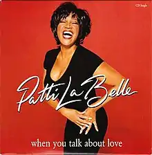 "When You Talk About Love" is a song recorded by Patti LaBelle. It was written by Ann Nesby, James Harris III, Terry Lewis, and James "Big Jim" Wright for her 1997 studio album Flame. Production was helmed by Harris and Lewis, with Wright credited as co-producer. Released as the album's lead single, "When You Talk About Love" became one of the LaBelle's most popular hit singles in the 1990s, reaching number 56 on the US Billboard Hot 100 and number 12 on the Hot R&B/Hip-Hop Songs.[1] A dance remix of the song helped to bring the song to number-one on the Hot Dance Club Songs chart, making it the fourth number-one dance single in LaBelle's career.[2] The video featured LaBelle playing a teacher giving a "class" about love.