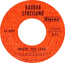 On "Where You Lead" Streisand had the backing of the all-female band Fanny augmented by Billy Preston on organ and disc producer Richard Perry on tambourine: Fanny - who arranged the track - also served as chorale, augmented by Clydie King, Venetta Fields, and Oma Drake. Issued as advance single in June 1971, "Where You Lead" just reached Top 40 hit status, #40 being its peak on the Billboard Hot 100.[6]