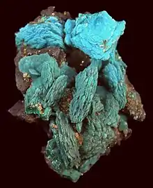 The ore deposits are classified as supergene oxide copper deposits and are primarily composed of weathered copper sulphide primary ores now present as a variety of copper carbonate minerals and secondary sulphides - primarily chalcocite - hosted within slate and conglomerate.