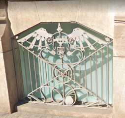 Whiplash motif at a metalwork railing. Editorial Montaner i Simón, Barcelona, Spain. (1881)