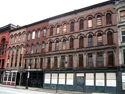 Whiskey Row refers to a block-long stretch from 101–133 W. Main Street that once served as home to the bourbon industry in Louisville, Kentucky. The collection of Revivalist and Chicago School-style buildings with cast-iron storefronts were built between 1852 and 1905. In 1857, the buildings were built and used to store whiskey barrels that had been produced from the distilleries nearby. [1] On a list of Louisville Most Endangered Historic Places, the buildings were slated for demolition in 2011,[2] but an agreement between the city, local developers, and preservationists saved Whiskey Row.
