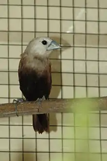 The white-headed munia (Lonchura maja) is a species of estrildid finch found in Indonesia, Malaysia, Singapore, Thailand and Vietnam. This species is also introduced to Portugal. It is found in wetlands habitat. The status of the species is evaluated as Least Concern.
