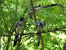 The white-throated magpie-jay was formally described in 1827 by the English naturalist William John Swainson from a specimen that had been collected by the naturalist William Bullock in Temascaltepec, Mexico. Swainson coined the binomial name Pica formosa.[2] The specific epithet is from the Latin formosus meaning "beautiful".[3] The white-throated magpie-jay is one of two magpie-jays now placed in the genus Calocitta that was introduced in 1841 by the English zoologist George Robert Gray with the white-throated magpie-jay as the type species.[4][5]