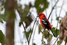 The white-winged tanager (Piranga leucoptera) is a medium-sized American songbird in the family Cardinalidae, the cardinals or cardinal grosbeaks. It is found from Mexico, through Central America, across northern South America and as far south as Bolivia.[2][3]