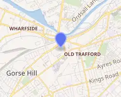 Manchester is synonymous with greyhound racing because Belle Vue Stadium became the first greyhound track in the United Kingdom and Ireland to hold oval course racing in 1926. One year later on 1 November 1927 the remaining eleven acres out of a sixteen-acre plot of land belonging to the Royal Botanical Gardens was sold to Canine Sports Ltd and a stadium was speedily constructed.[1] The stadium in the Old Trafford area was south of the Chester Road tramway and north of Talbot Road.[2]