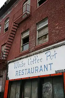 The last White Coffee Pot restaurant closed in Brooklyn Park, Maryland, in 1993.[1] The company shared ownership with the Horn and Horn Smorgasbord Cafeteria chain,[2] and some locations became Cactus Willie's all-you-can-eat restaurants.[3]