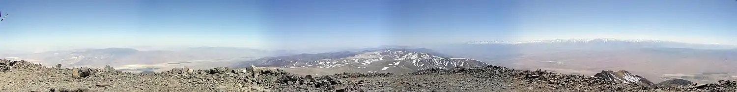 It is the fourteenth most topographically prominent peak in the contiguous United States.[4] White Mountain Peak is one of only two fourteeners (peaks above 14,000 feet) in California that are not in the Sierra Nevada, the other being Mount Shasta at the far northern end of the state in the Cascade Range. It is the only fourteener in the contiguous United States that is not in the Rocky Mountains, the Cascade Range, or the Sierra Nevada.