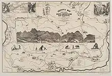 Some of the earliest maps of the White Mountains were produced as tourist maps and not topographical maps. One of the first two tourist maps of the mountains was that produced by Franklin Leavitt, a self-taught artist born near Lancaster, New Hampshire in 1824.[4] Leavitt's hand-drawn map, today in the collection of Harvard University, is largely folk art, but does convey some of the region's features.[5] Leavitt drew several versions of his map, beginning in 1852. The fourth version, printed in 1871, was printed at Boston and carried a retail price of one dollar.[6] Other early maps of the region were drawn by H. Conant and by Harvard astronomer George Phillips Bond, who published the first topographical map of the region in 1853.[7]