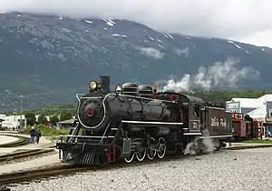 ![]() WP&YR narrow gauge locomotive No. 73 at Skagway, Alaska in August 2006 | |||||||||||||||||||||||||||||||||||||||||||||||