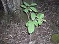 White beech germinating in the first week of September. Note the discarded oval part of the capsule, pushed out by the shoot. Coorabakh National Park