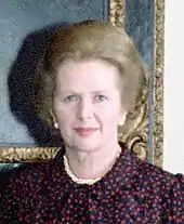 Prime Minister Margaret Thatcher had spent 13 June at the Royal Navy's Northwood Headquarters in Hertfordshire, observing the war's final battles. On the morning of 14 June she held a tense meeting with her war cabinet, whose members were waiting expectantly for news of an Argentine collapse.[7] The first reports of white flags over Port Stanley had reached London by around 1 pm BST (9 am Falklands time). Thatcher, intent on controlling the moment of the announcement, imposed a press blackout. She wanted the report to be broadcast live on the ITN News at Ten, snubbing the earlier BBC Nine O'Clock News.[8]
