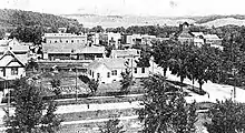 Whitehall was started in 1860 or 1861, in an area later known as Old Whitehall about a mile from the center of the current city, by Ole Knudtson. He came to Whitehall June 25, 1860, and opened a hotel and blacksmith shop. The proprietors of the town site were Benjamin Franklin Wing and Mr. Georges.[7] A post office called Whitehall was first established in 1861.[8] The city was named by Benjamin F. Wing, possibly after White Hall, Illinois and Whitehall, New York.[9]