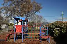 On the main street, opposite the church, is a recreation ground and playground, both maintained by the Meander Valley Council.[28] The recreation ground was upgraded with toilets c.1949 that were replaced with newer ones in 1966. Playground equipment was installed in 1964.[29]
