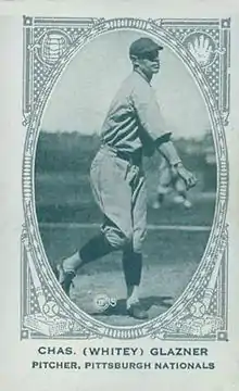 Charles Franklin "Whitey" Glazner (September 17, 1893 – June 6, 1989) was a professional baseball player. He was a right-handed pitcher over parts of five seasons (1920–24) with the Pittsburgh Pirates, and Philadelphia Phillies. For his career, he compiled a 41–48 record, with a 4.21 earned run average, and 266 strikeouts in 783+2⁄3 innings pitched.