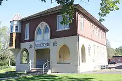 Whitpain Public School, also known as Whitpain High School and the 1895 School, is a historic school building located at Blue Bell, Montgomery County, Pennsylvania. It was built in 1895, and is a two-story, stucco covered stone and brick building. It is in a Late Victorian style with Queen Anne and Gothic Revival style details. It measure 37 feet wide by 50 feet deep, and sits on a fieldstone foundation. It features an entrance porch and numerous Gothic arches.[2]