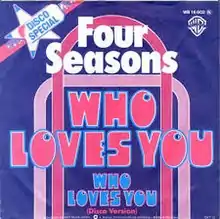 "Who Loves You" is the title song of a 1975 album by The Four Seasons. It was composed by Bob Gaudio and Judy Parker and produced by Gaudio. It reached number 3 on the Billboard Hot 100 in November 1975.[1][2][3]