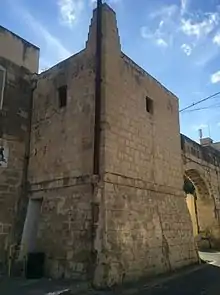 The first inspection tower of the Wignacourt Aqueduct is located in present-day Santa Venera. It is called the Tower of St. Joseph (Italian: Torre di San Giuseppe), but it is commonly known as it-Turretta in Maltese or the Torretta in Italian. The turret is linked to the aqueduct's arches, and it has two floors with a buttressed lower level, giving it the resemblance of a coastal watchtower such as the De Redin towers. It is not clear if the present structure is the original one, since the original designs of the aqueduct show a slightly different tower.[4] The tower had the following inscription (no longer visible):[1]