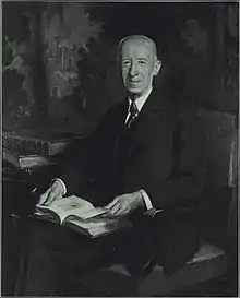 After Moore's death in 1892, Eames became an assistant librarian, and eventually a full librarian at Lenox, and later, upon the merging of the Tilden trust, Astor and Lenox libraries he was appointed 'Lenox Librarian.' He became Chief of the American History Division at the New York Public Library in 1911, and Bibliographer (a position he held until his death) there in 1916.[3] In 1924, The New York Times called Eames "The greatest living scholar of books in America."[4] A. S. W. Rosenbach said of Eames "Probably the greatest student of books in the whole history of scholarship and book collecting lives quietly in New York, worshiped by every collector and scholar and unknown to the world in general- Wilberforce Eames."[5]