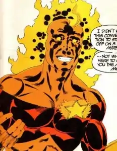 Initially, Wildfire and Superboy are rivals and fight over the position of team leader. Wildfire acquits himself well in that battle, establishing that his raw power is comparable to a Kryptonian's. As leader, Wildfire receives mixed reviews. Though he is decisive and a gifted tactician, his poor people skills alienate many of his fellow members (though not, ironically, Superboy; at the conclusion of a particularly rough crisis, he tells his one-time rival that he had become "one hell of a Legionnaire"). He leads the Legion through the Earthwar and Omega crises but is defeated for re-election by Lightning Lad.