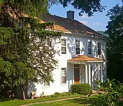 It was added to the National Register of Historic Places in 1998. Signs around the property indicate that it is currently owned by nearby Storm King Art Center. It is sided in white clapboard, with a gabled roof shingled in asphalt and pierced by two chimneys, one stone and the other brick. The cornice is bracketed. A porch with two classical columns runs the length of the western (front) facade.[1]