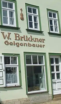 As the oldest active member of the colleagues in the Association of German Violin Makers and Bow Makers, Wilhelm Brückner still builds and repairs in the same workshop as his grandfather,[3] now together with his daughter, violin maker Ruth Brückner (born 1962).