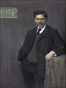 The Mayor of Plau had seen some of Wandschneider's artistic work and was impressed, so he attempted to arrange a scholarship. After securing recommendations from Ludwig Brunow and Martin Wolff the Mayor sent a letter to Grand Duke Frederick Francis III, who granted Wandschneider a personal gift of 150 Marks to study at the Prussian Academy of Art.[2] After passing the entrance exam in 1886, he studied with Albert Wolff, Paul Friedrich Meyerheim, Fritz Schaper and Gerhard Janensch.[3] He also gained practical experience working in the studios of Ludwig Brunow, Martin Wolff, Karl Hilgers and Ernst Herter. In 1895, he became a Master Student of Reinhold Begas but did not remain long, having won a prize from the "Philip von Rohr Foundation" which enabled him to study in Italy for a year.[3] While there, he met his future wife, Anna Kreß, who was working as a model.[2]