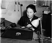 Wilhelmina Wendt (8 August 1896 – 26 June 1988), commonly known as Tiddit, was a Swedish silversmith. She was the first woman in Sweden to be granted the title of "master silversmith". From the late 1920s, she designed trays, serving dishes, bowls, jugs and jewellery. In the mid 1940s, she settled in Perstorp where she combined her father's black insulation material "isolit" with her own thin silver designs, producing artefacts in what she called "silverisolit".[1][2][3]