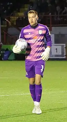 He made his first team debut for Crewe Alexandra on 19 April 2019, keeping a clean sheet, in a 2–0 win over Yeovil Town at Gresty Road.[19]