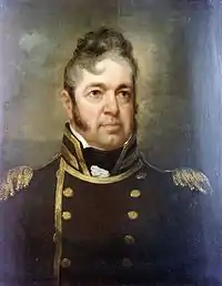 William Bainbridge was born in Princeton, New Jersey, eldest son of Dr. Absalom Bainbridge and Mary Taylor.[1] His father, a loyalist during the American Revolution, served as a surgeon in the British Army and was convicted of high treason by the State of New Jersey and successfully filed for damages with the American Loyalist Claims Commission. William had two brothers: Joseph, who also became a Navy captain, and John T.; and a sister, Mary. He was raised by his maternal grandfather, John Taylor, Esq., of Middleton, New Jersey as his father left for England in 1783 and his mother remained behind due to her ill health (though his father returned to the United States and died in New York City in 1807).[2][3]