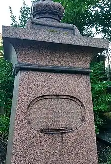 He died on 27 May 1849.[1] There is a memorial to him in Highgate Cemetery (west side) with an inscription which reads: To the memory of William Aubrey De Vere, 9th Duke of St Albans, for many years proprietor of Holly Lodge, Highgate, Born March 24th 1801, Died May 26th 1849.