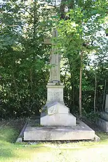 He is buried in Woodside Cemetery, Paisley, on the south side of the main east–west path at the crest of the hill, close to the crematorium.