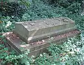 In 1861–2, Burges was commissioned by Charles Edward Lefroy, secretary to the Speaker of the House of Commons, to build All Saints Church, Fleet, as a memorial to Lefroy's wife.[41] She was the daughter of James Walker, who established the marine engineering company of Walker and Burges with Burges's father Alfred, and this family connection brought Burges the commission.[42] Pevsner says of Fleet that "it has no shape, nor character nor notable buildings, except one,"[41] that one being All Saints. The church is of red brick and Pevsner considered it "astonishingly restrained."[41] The interior too is simply decorated but the massive sculpture, particularly of the tomb of the Lefroys and of the gabled arch below which the tomb originally stood, is quintessentially Burges, Crook describing it as "not so much muscular (gothic) as muscle-bound."[43]